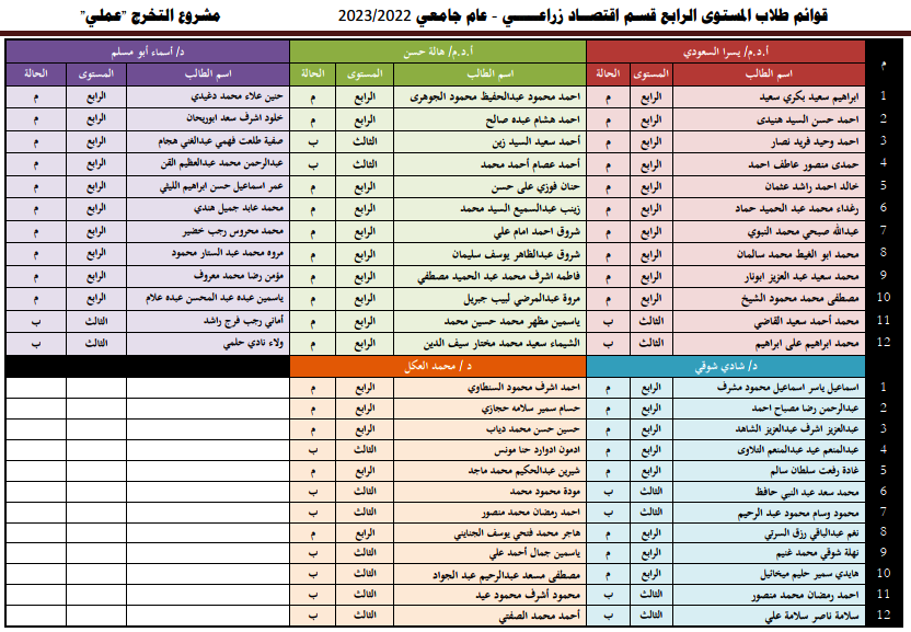 توزيع طلاب مشروع التخرج 2023