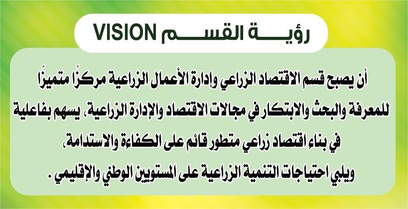 أن يكون قسم الاقتصاد الزراعي بكلية الزراعة – جامعة المنوفية له دور فعال في مجال الاقتصاد الزراعي من الناحية الأكاديمية والتطبيقية ويحقق للخريجين أعلى المستويات الفكرية والمهارية للتنافس محليا وعالميا في مجال تخصصه