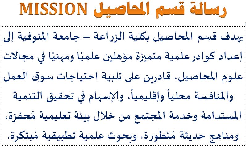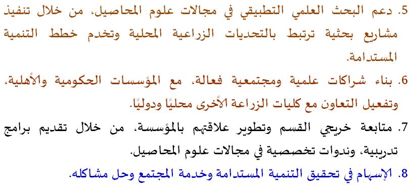 - توظيف العلوم الأساسية ذات الصلة فى مجالات علوم المحاصيل.