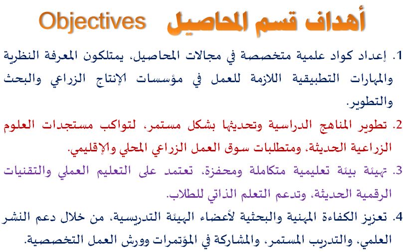 أهداف برنامج الانتاج النباتى (توجه المحاصيل) Objectives