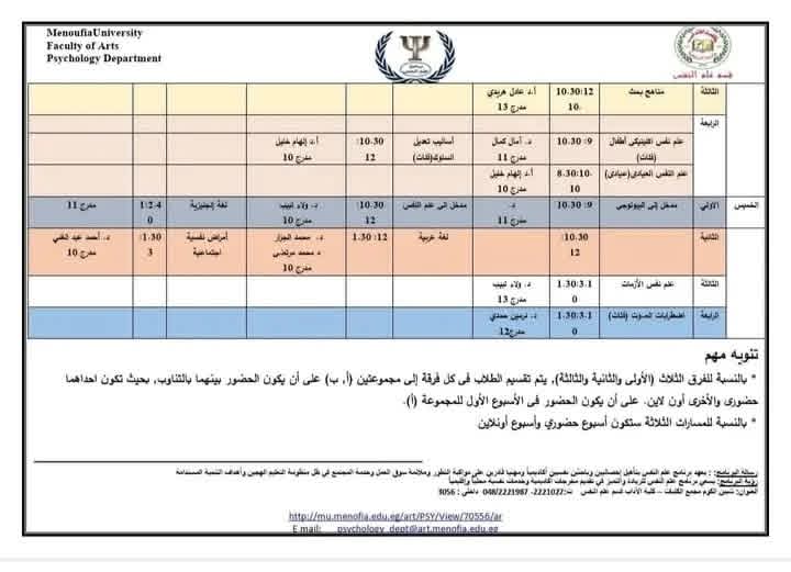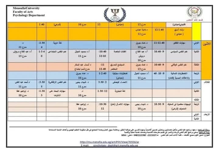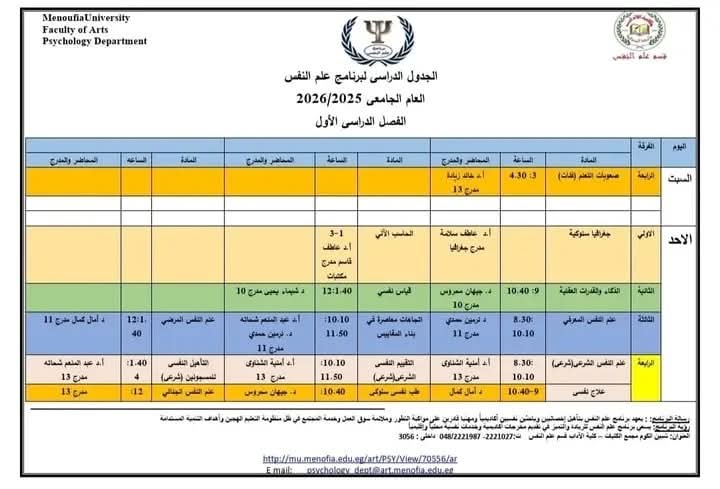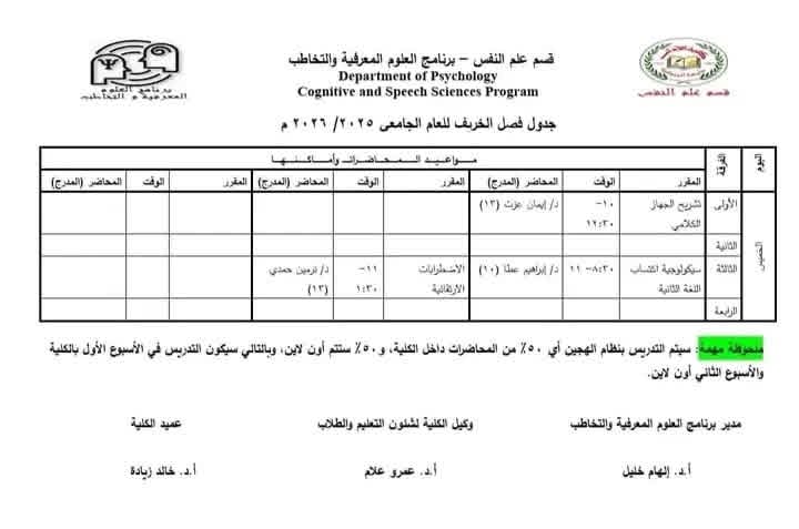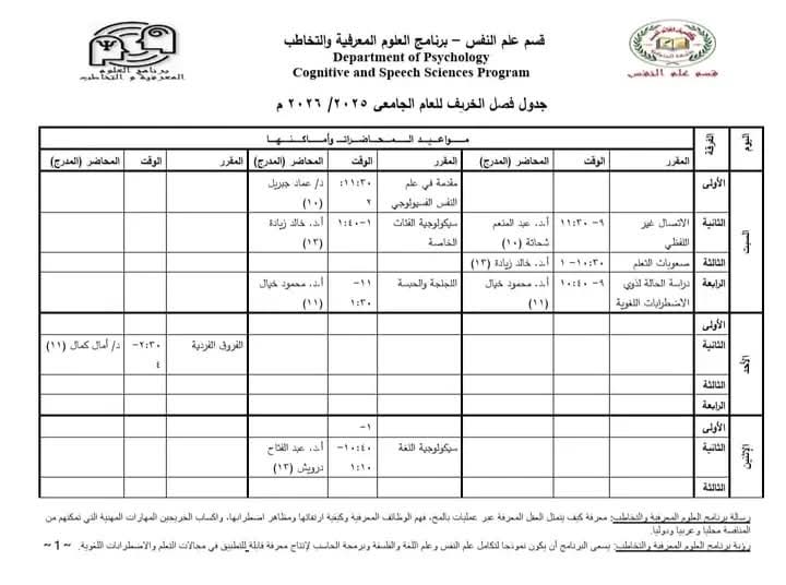 الجداول الدراسية 1_ الجدول الدراسى للترم الأول للعام الجامعى 2026/2025 2_ الجدول الدراسى لبرنامج العلوم المعرفية والتخاطب Share