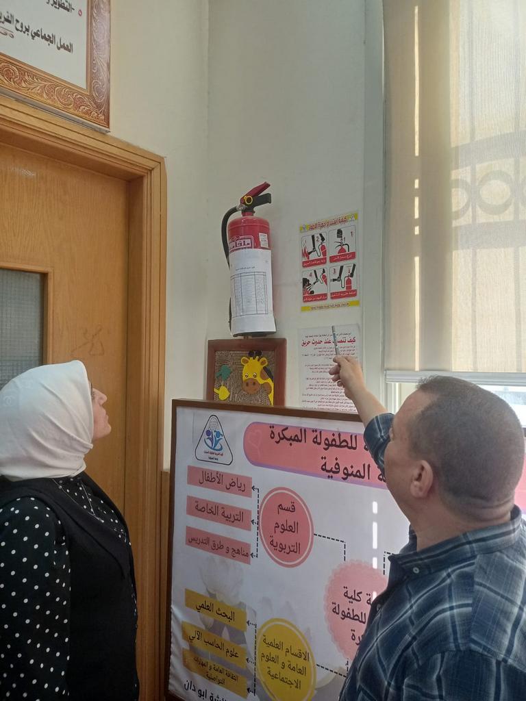 وتأتي هذه الجهود في إطار توجيهات الجامعة برعاية الأستاذ الدكتور احمد القاصد رئيس الجامعة والأستاذ الدكتور صبحى شرف نائب رئيس الجامعة لشئون خدمة المجتمع وتنمية البيئة واشراف الأستاذ الدكتور ايناس سعيد الشتيحي عميد الكلية والقائم بعمل وكيل الكلية لشئون خدمة المجتمع وتنمية البيئة ، بضرورة الالتزام بمعايير الجودة والسلامة، حفاظًا على الأرواح والممتلكات، ودعمًا للعملية التعليمية.