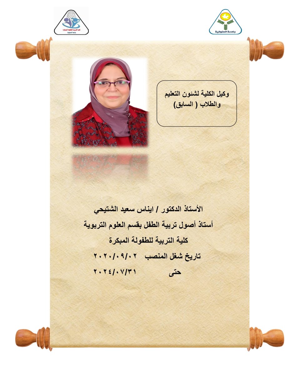 وكيل الكلية للدراسات العليا والبحوث