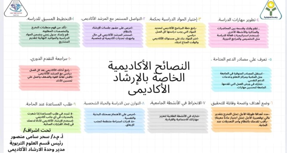 الارشادات العامة لوحدة الارشاد الاكاديمى
