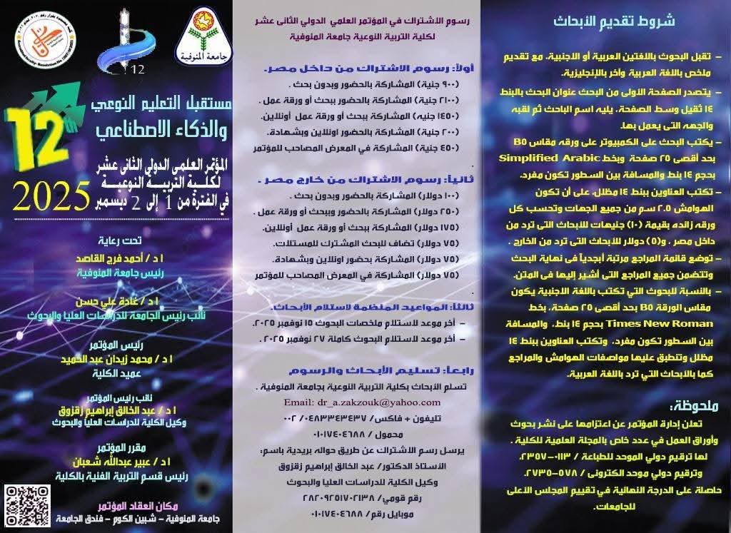المؤتمر العلمي الدولي الثاني عشر لكلية التربية النوعية جامعة المنوفية