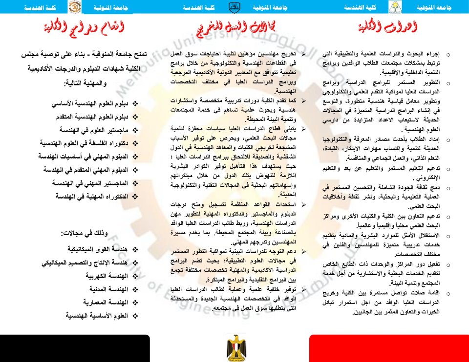 - نعنبر كلية الهندسة بجامعة المنوفية واحدة من أقدم كليات الجامعة حيث انشأت عام 1975 وهى من اكبر كليات الجامعة من حيث المساحة وتحتوى على العديد من الأبنية التعليمية لمختلف الأقسام وتحتوى على عدد كبير من قاعات الدراسة المجهزة بالوسائط المتعددة لدعم العملية التعليمية