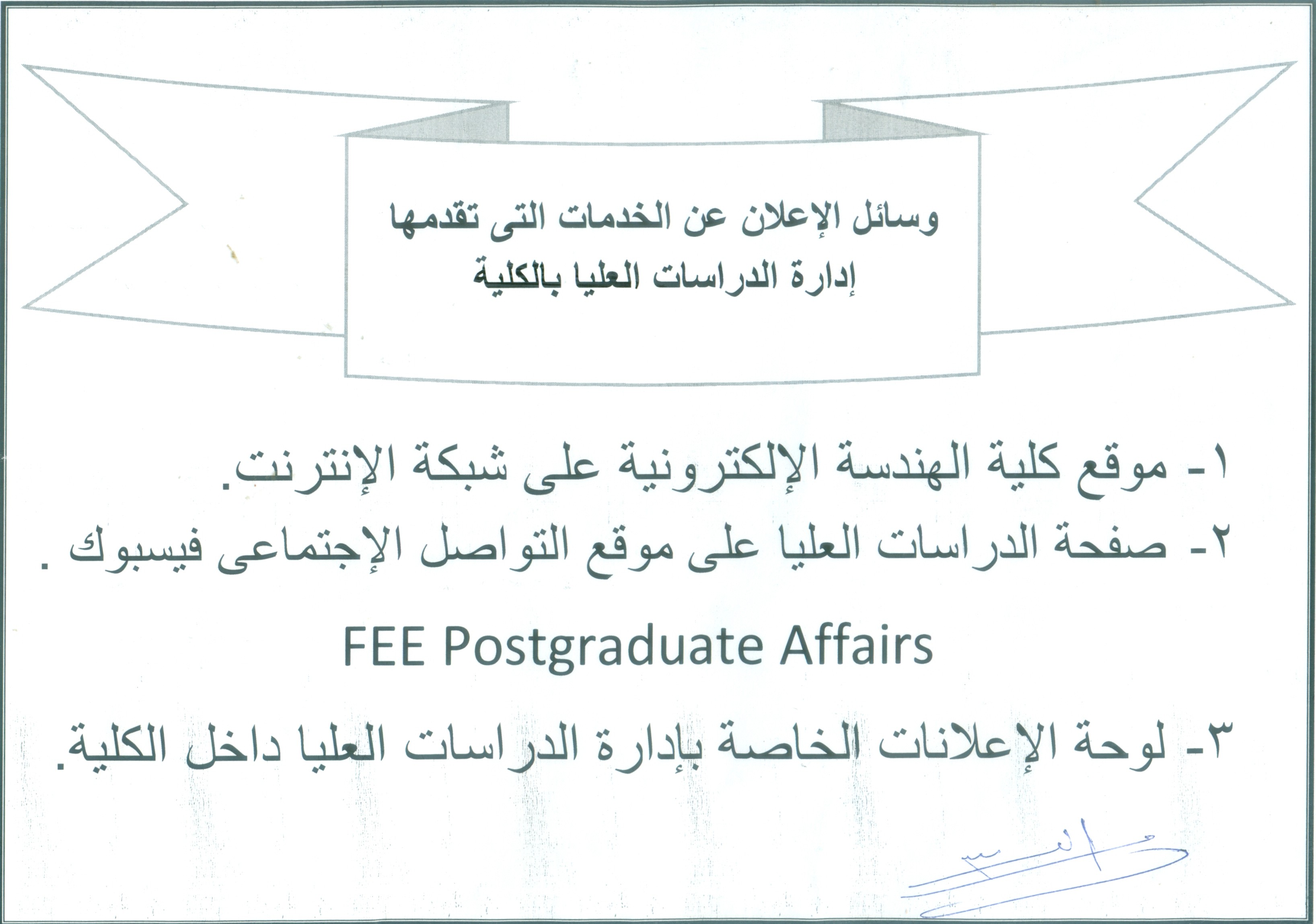 وسائل الاعلان عن الخدمات التى تقدمها ادارة الدراسات العليا بالكلية