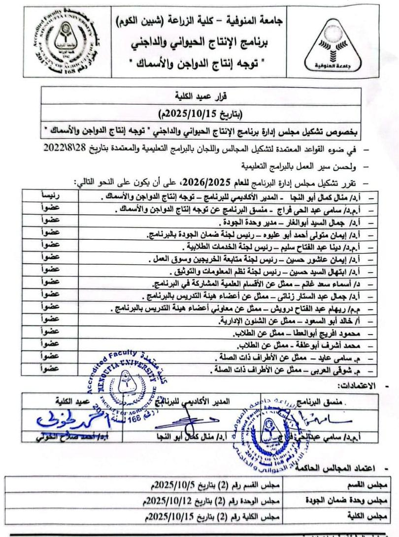 الهيكل التنظيمي لبرنامج الانتاج الحيواني والداجني "توجه إنتاج الدواجن والأسماك"