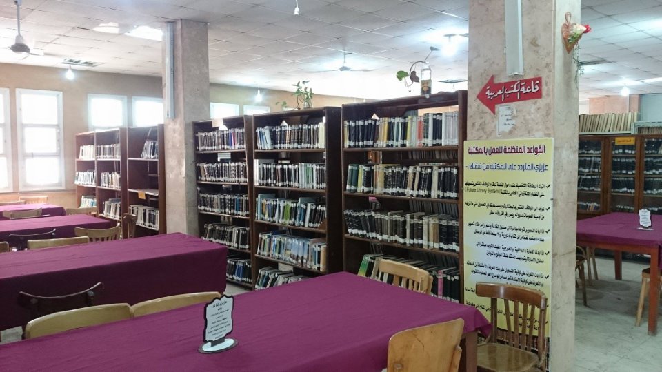 مكتبة كلية الزراعة توجد بالدور الأرضي بالمبنى الرئيسي للكلية خلف شئون الطلاب وتتكون من قاعة واحدة كبيرة تنقسم إلي مجموعة من القاعات وهي:-