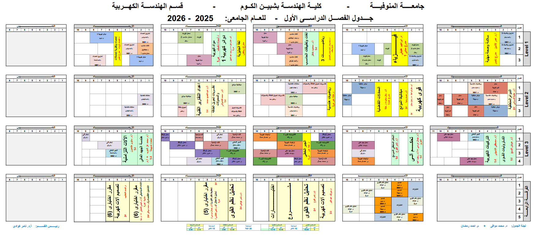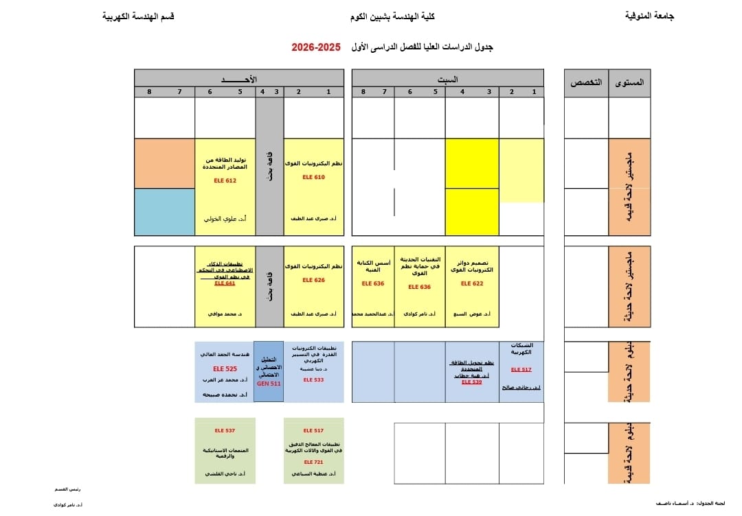 جدول الفصل الدراسي الاول للعام الجامعي 2025\2026