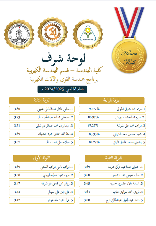 لوحة شرف اوائل الطلاب للعام الجامعي 2024\2025