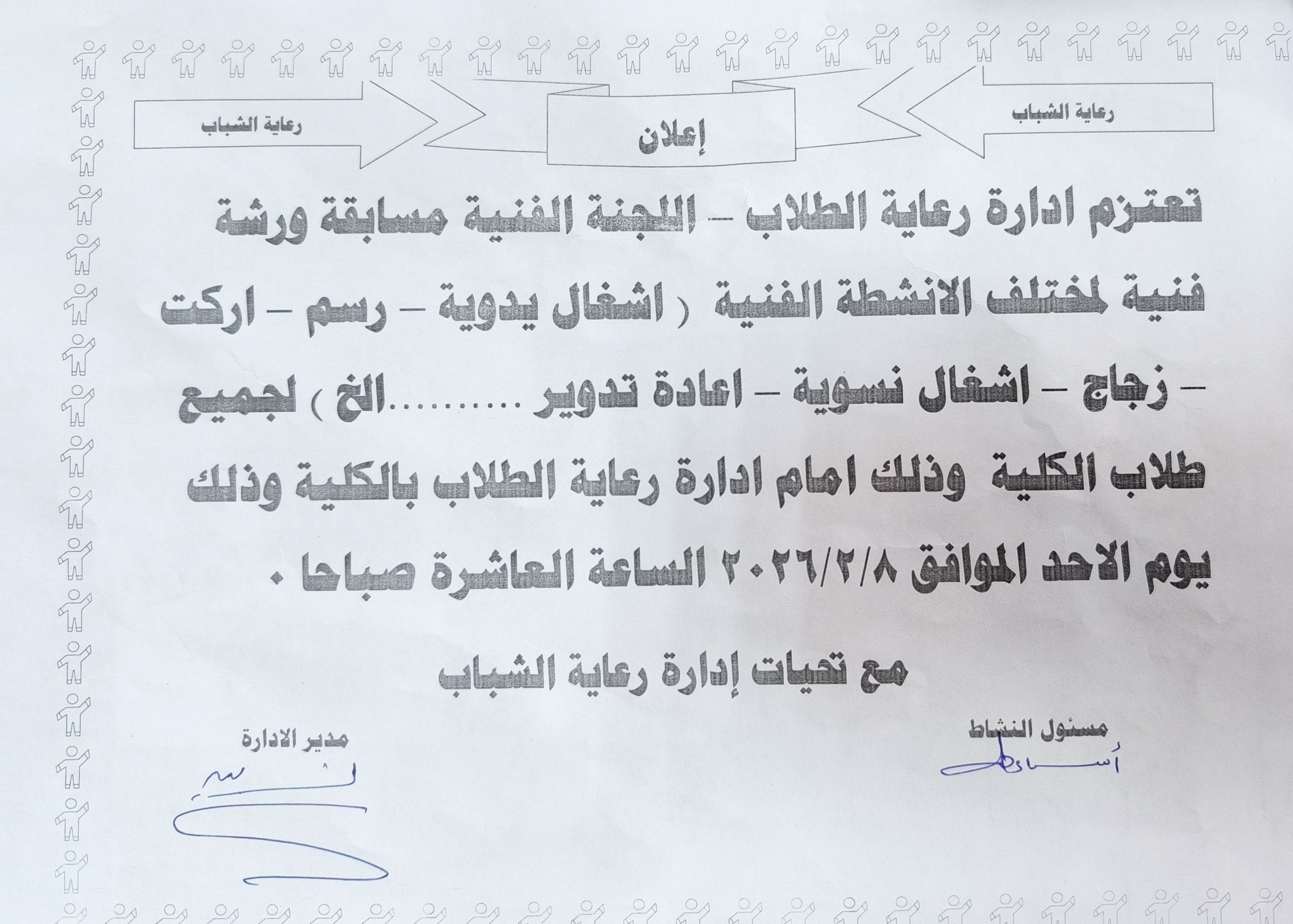 Announcement of an Art Workshop Competition for Various Artistic Activities