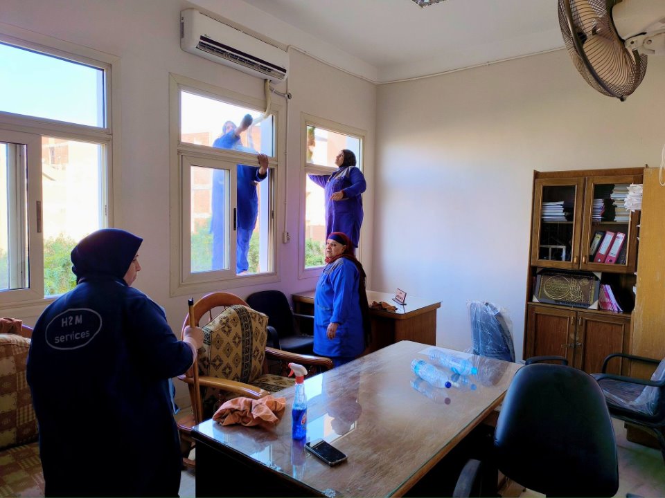 استعدادات الكلية لاستقبال زيارة الجودة من تنفيذ أعمال صيانة وأعمال النظافة العامة ورفع اللافتات الإرشادية والتنظيمية