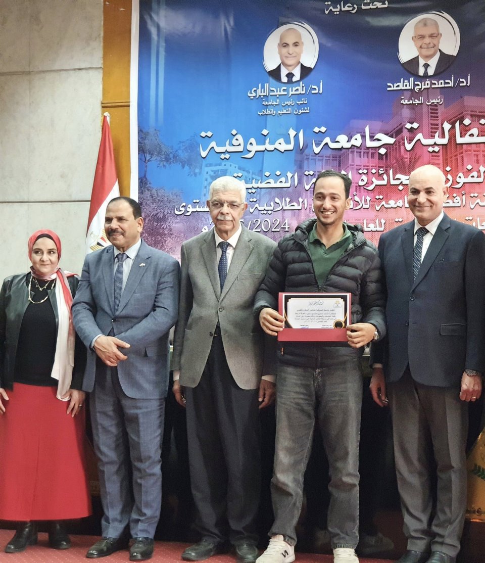 تقديرًا لحصول جامعة المنوفية على المركز الثاني (الفئة الفضية) في مسابقة أفضل جامعة في الأنشطة الطلابية على مستوى الجامعات المصرية للعام الجامعي 2024/2025، كرَّم السيد الأستاذ الدكتور/ أحمد فرج القاصد رئيس جامعة المنوفية مسئولي ومنسقي منصة الأنشطة الطلابية، وذلك تقديرًا لجهودهم المتميزة التي أسهمت في تحقيق هذا الإنجاز المشرف.