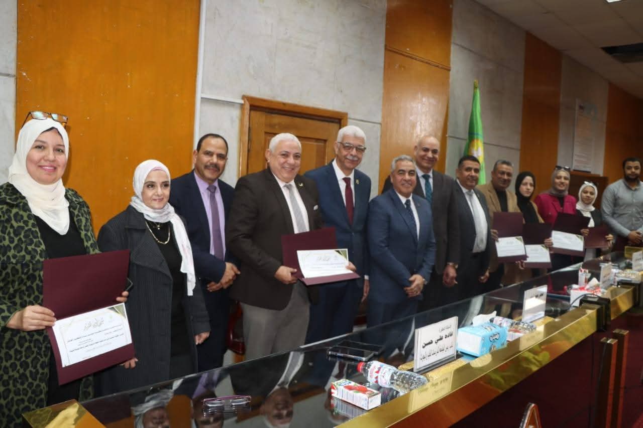 رئيس جامعة المنوفية يكرّم المشاركين بعد فوز الجامعة بالمركز الثالث في مسابقة أفضل جامعة صديقة للبيئة