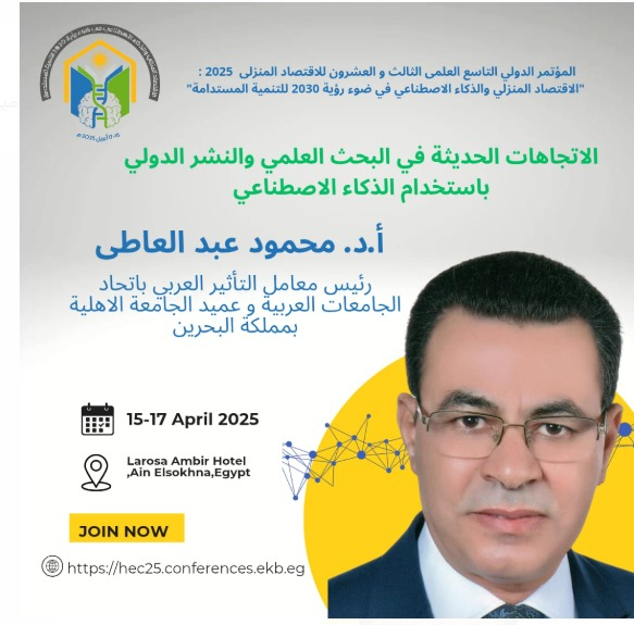 المؤتمر الدولي التاسع العلمى الثالث والعشرون للاقتصاد المنزلي 2025 الاقتصاد المنزلى والذكاء الاصطناعى في ضوء رؤيه 2030 ل