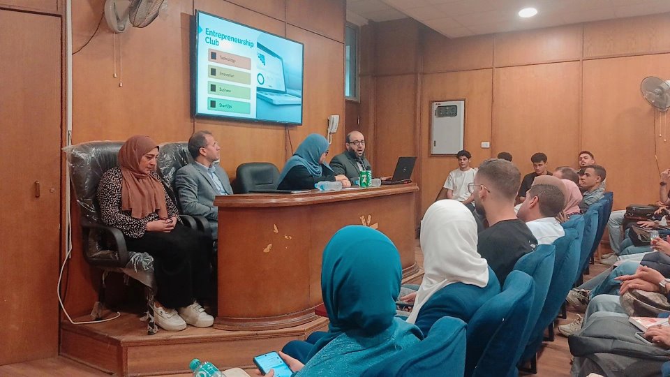 حاضر بها أ.د عمرو مسعد مدير نادي ريادة الأعمال بالجامعة وذلك بحضور أ.د/ عادل رفعت وكيل الكلية لشئون التعليم والطلاب وا.د/ السيد السعيد رئيس قسم الاتصال التسويقي المتكامل ود هبة عباس المدرس بقسم الصحافة المطبوعة والإلكترونية والسيدة تهاني حافظ امين الكلية وعددًا من أعضاء الهيئة المعاونة وطلاب وطالبات الكلية.