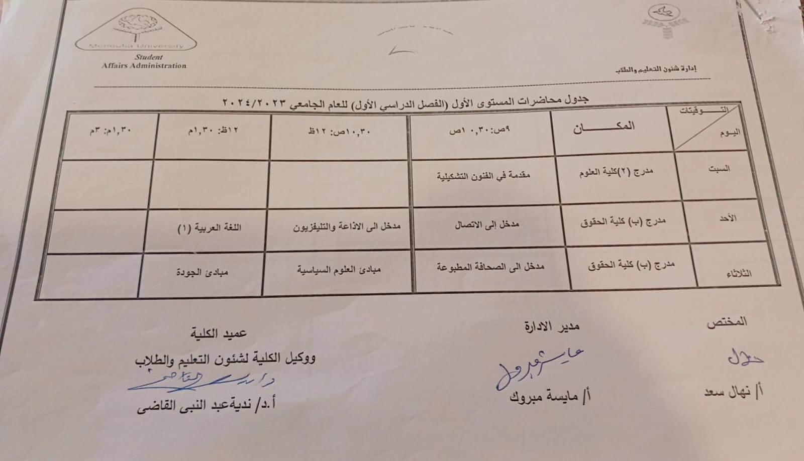 الفرقة الاولي فصل دراسي اول الجدول الدراسى للعام 2021/2022 من هنا الجدول الدراسى للعام الجامعى 2022/2023 من هنا الجدول الدراسي للعام الجامعي 2023/2024 من هنا الجدول الدراسي للعام الجامعي 2024/2025 من هنا Share