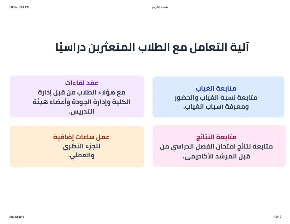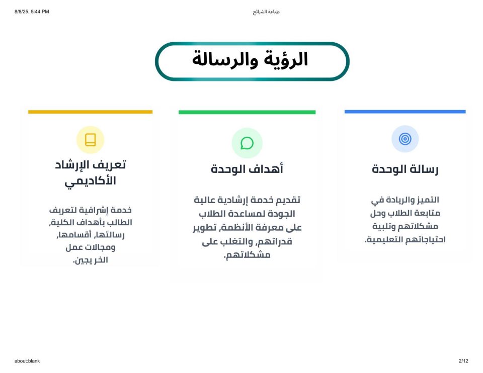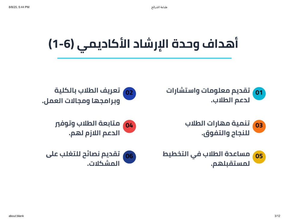 وحدة الإرشاد الأكاديمي * تسعي وحدة الإرشاد الأكاديمي لرفع مستوي تقديم الخدمات الطلابية بما يتفق مع المعايير العالمية في تقديم الخدمات الإرشادية في مؤسسات التعليم العالى. Share