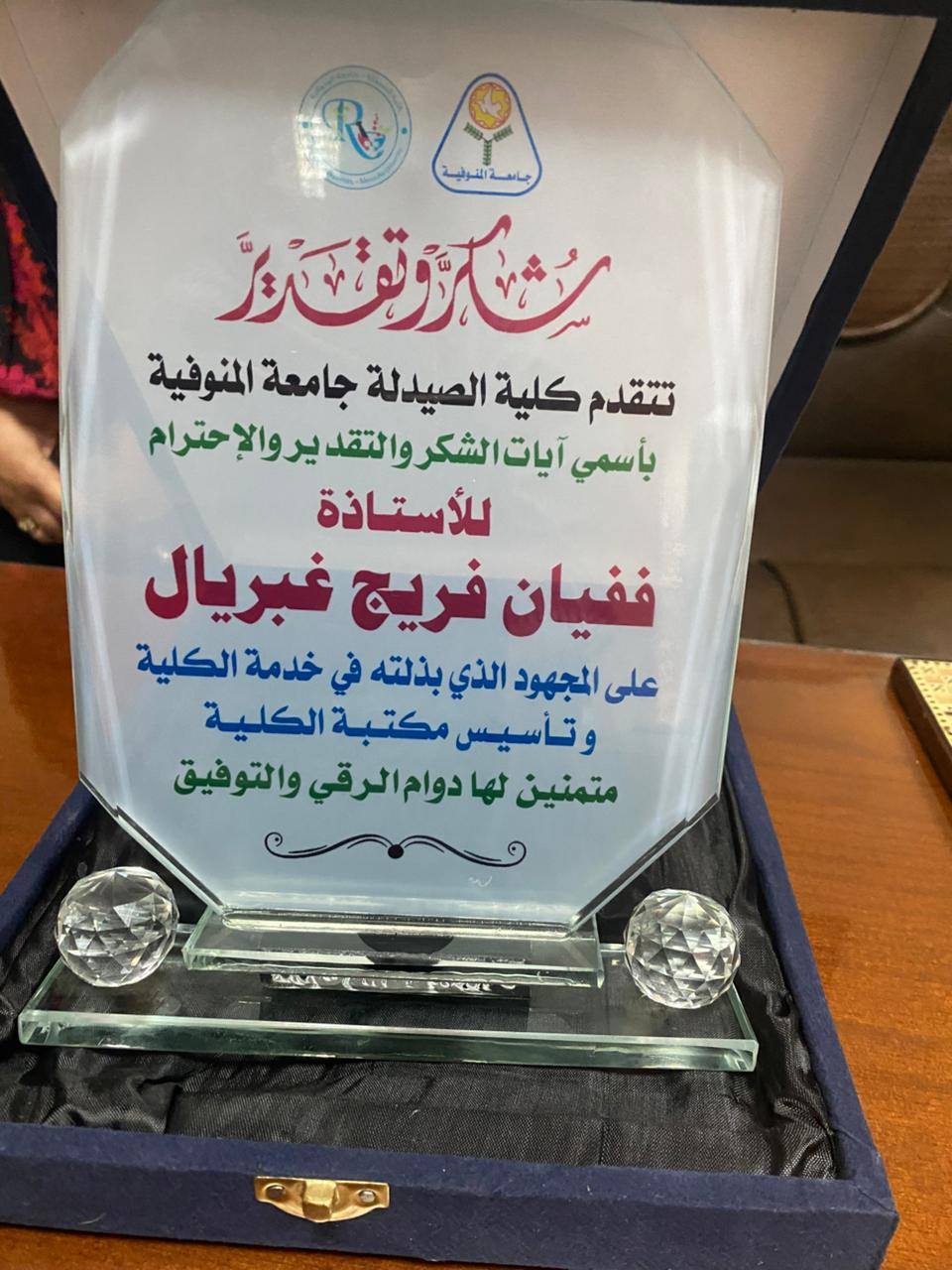 وفي ختام الحفل، قدّم العميد درع التكريم للأستاذة ففيان فريج مع بعض الهدايا التذكارية والتى تعكس جزء من محبة السادة الزملاء بالكلية وتقدير إدارة الكلية لها متمنيًا لها دوام التوفيق والنجاح في مسيرتها المقبلة.