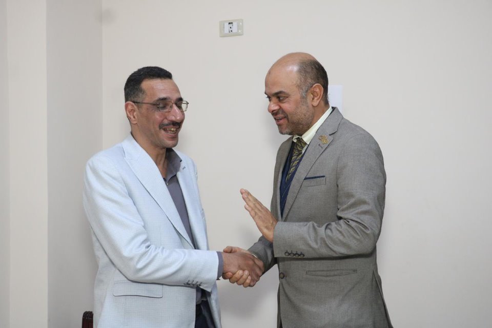 حضر الأستاذ الدكتور هيثم ميمون عباس أحمد، عميد كلية الصيدلة – جامعة المنوفية، لقاءً مميزًا مع الأستاذ الدكتور معوض الخولي، رئيس جامعة المنصورة الجديدة والرئيس الأسبق لجامعة المنوفية، خلال زيارته لكلية العلوم لتهنئة الأستاذ الدكتور حسام عوض بمناسبة صدور القرار الجمهوري بتعيينه عميدًا للكلية، وتوجيه التحية للأستاذ الدكتور ياسر كمال على جهوده خلال فترة توليه عمادة الكلية. وجرى خلال اللقاء تبادل التهاني ومناقشة سبل تعزيز التعاون بين الكليات ودعم البيئة البحثية داخل الجامعة، في أجواء ودية جسّدت عمق العلاقات الأكاديمية بين قيادات الجامعتين.