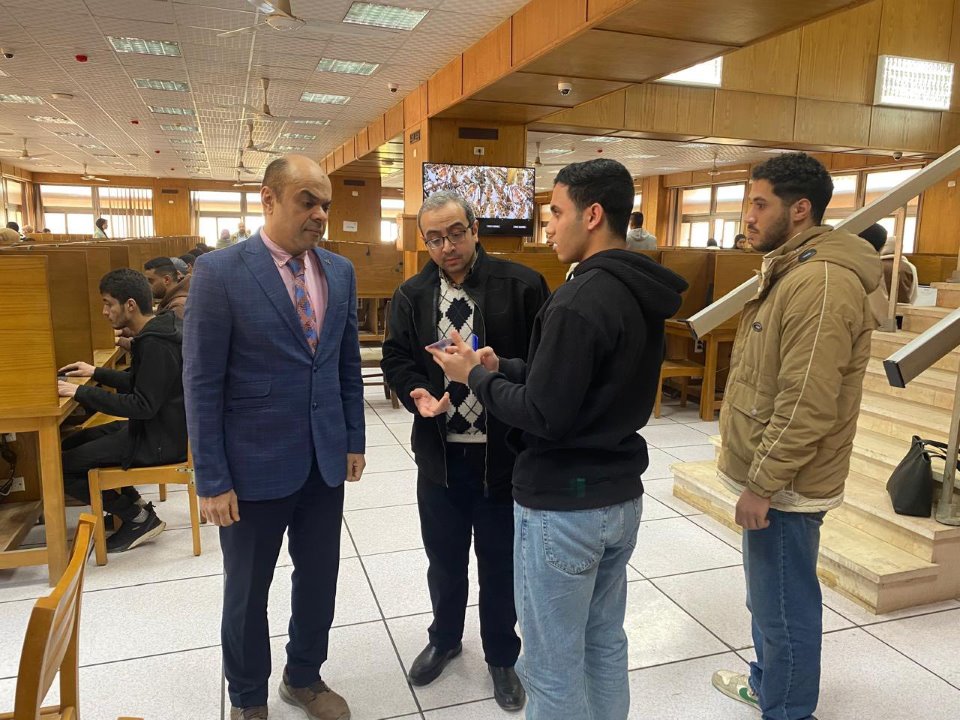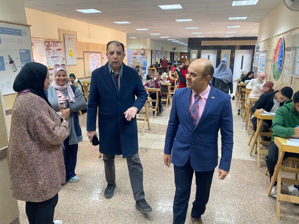 قيادات الكلية تتفقد انتظام أول أيام امتحانات الفصل الدراسي الأول للعام الجامعي ٢٠٢٥–٢٠٢٦ ادارة الكلية 24/12/2025 في إطار الحرص على انتظام العملية الامتحانية وتوفير الأجواء الملائمة للطلاب، قام الأستاذ الدكتور هيثم ميمون عباس، عميد كلية الصيدلة، يرافقه الأستاذ الدكتور أحمد دنيا، وكيل الكلية لشؤون التعليم والطلاب، بجولة تفقدية شاملة للاطمئنان على سير امتحانات الفصل الدراسي الأول للعام الجامعي ٢٠٢٥–٢٠٢٦ في يومها الأول. وشملت الجولة تفقد عدد من لجان الامتحانات بمختلف الفرق الدراسية، حيث اطمأن سيادتهما على انتظام دخول الطلاب إلى اللجان في المواعيد المحددة، وتوافر الملاحظين، والتزام الجميع بالتعليمات والضوابط المنظمة للامتحانات، بما يضمن تحقيق مبدأ تكافؤ الفرص والعدالة بين جميع الطلاب. وتميز اليوم بإجراء امتحانات إلكترونية تماشياً مع خطة التحول الرقمي في الكلية، إلى جانب امتحانات ورقية لبرنامج فارم دي وامتحانات ورقية لبرنامج فارم دي صيدلة إكلينيكية، بما يعكس قدرة الكلية على الجمع بين الأساليب الحديثة والتقليدية لضمان أفضل أداء للطلاب. كما حرص عميد الكلية ووكيل شؤون التعليم والطلاب على الاستماع إلى آراء وملاحظات الطلاب داخل اللجان حول مستوى الأسئلة ومدى وضوحها وملاءمتها للمقررات الدراسية، مؤكدين أهمية توفير مناخ هادئ وآمن يساعد الطلاب على أداء الامتحانات بكل يسر وطمأنينة. وأكد الأستاذ الدكتور هيثم ميمون عباس أن إدارة الكلية تتابع الامتحانات لحظة بلحظة، وتعمل على تذليل أي عقبات قد تواجه الطلاب أو القائمين على العملية الامتحانية، مشددًا على الالتزام الكامل بتعليمات الجامعة المنظمة للامتحانات، واتخاذ كافة الإجراءات التي تضمن حسن سيرها حتى نهايتها. من جانبه، أوضح الأستاذ الدكتور أحمد دنيا أن هناك تنسيقًا مستمرًا بين إدارة الكلية وأعضاء هيئة التدريس والإداريين لضمان الانضباط داخل اللجان، وتوفير الدعم اللازم للطلاب، بما يعكس حرص الكلية على مصلحة أبنائها وتحقيق أعلى درجات الجودة في العملية التعليمية والامتحانية. Share