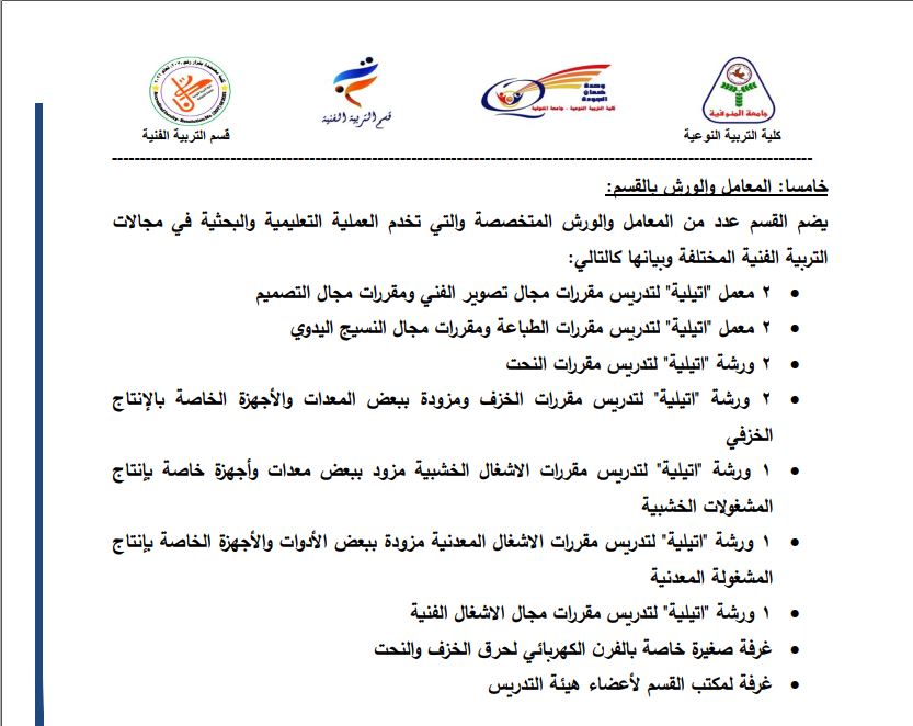 اقسام كلية التربية النوعية بالجامعات المصرية