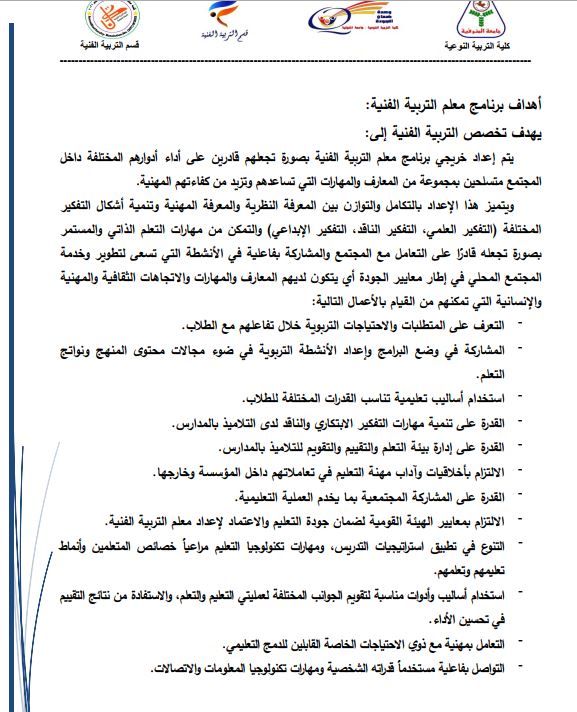 اقسام كلية التربية النوعية بالجامعات المصرية