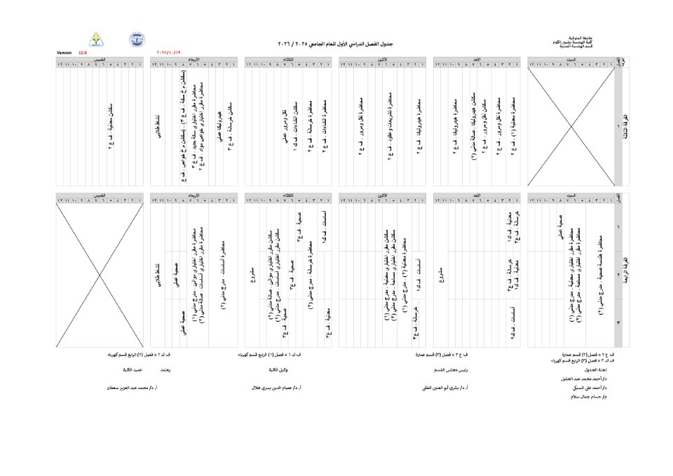 جدول محاضرات الفصل الدراسي الأول للعام الدراسي 2025-2026