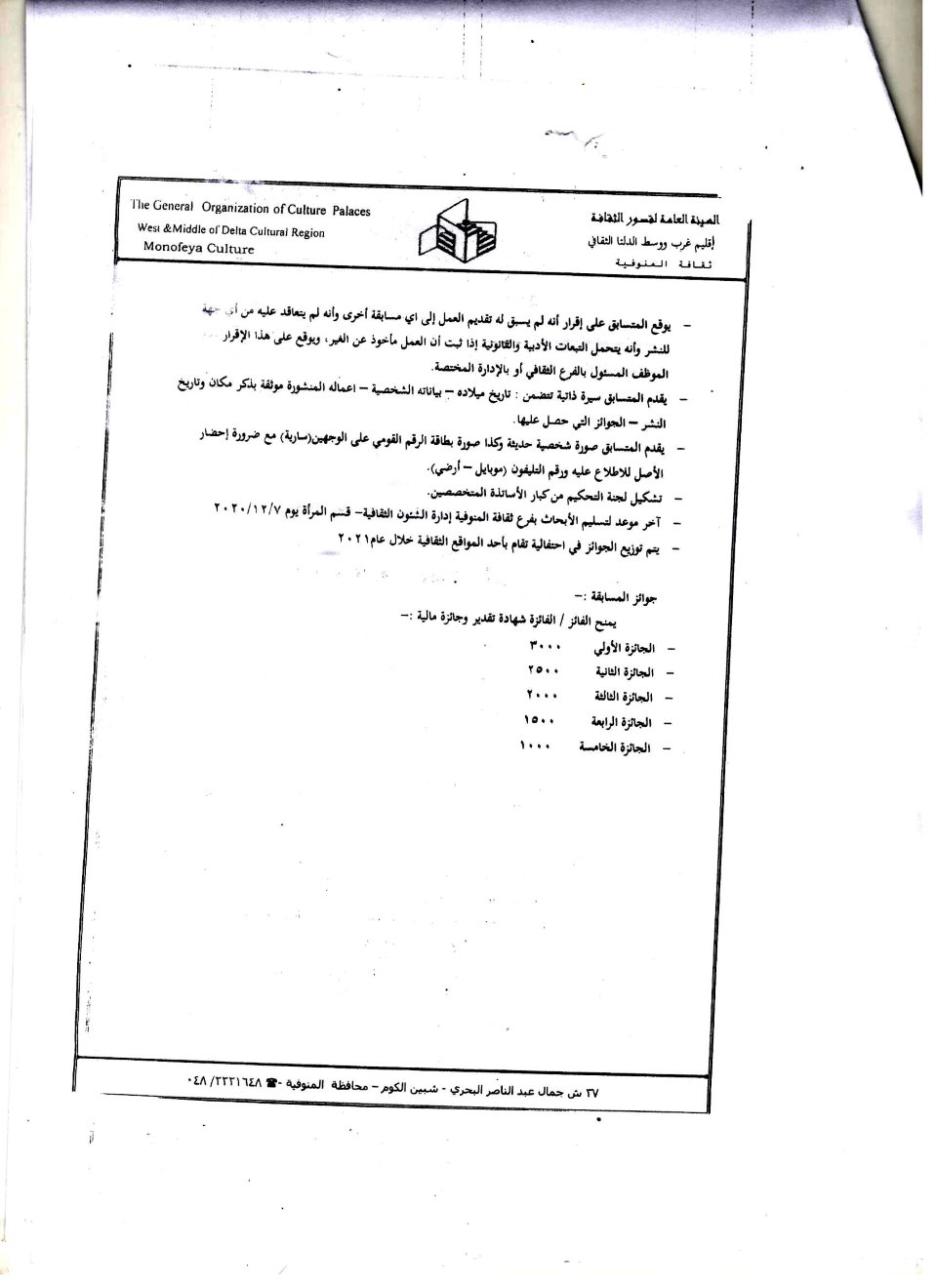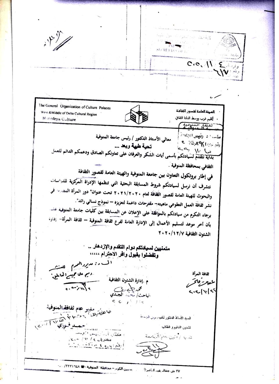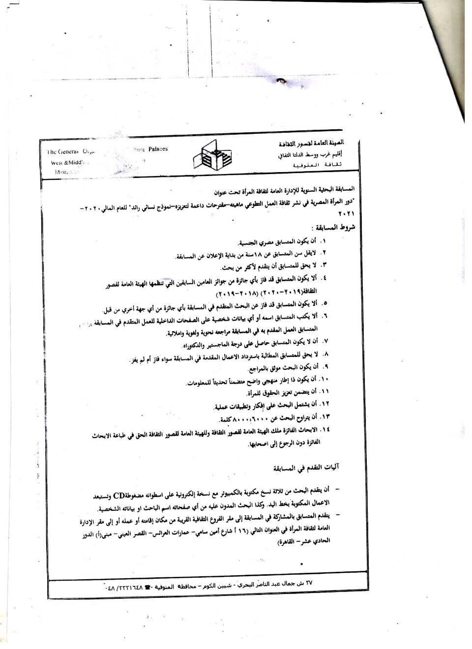 أعلان عن المسابقة البحثية للإدارة العامة لثقافة المرأة " دور المرأة المصرية في نشر ثقافة العمل التطوعي ماهيته - مقترحات داعمة لتعزيزه - نموذج نسائي رائد " للعام 2021/2020