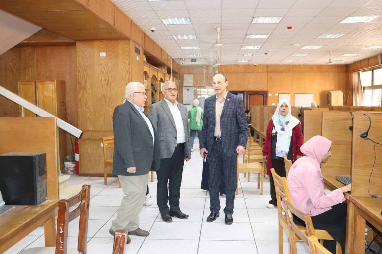 عميد الكلية يتفقد مكتبة الكلية ووحدة القياس والتقويم لمتابعة سير العمل وانتظام الأداء