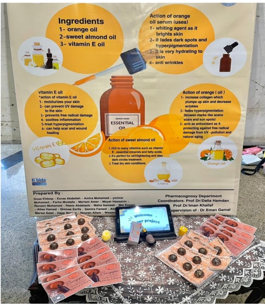وقد تم اختيار احسن المشاريع للمشاركه فى مؤتمر الكليه الدولى الذى اقيم فى الفترة 10و 11 مايو 2023 حيث تم تقسيم الطلاب الى مجموعات وعرضهم مستحضرات صيدلية التى قاموا بتحضيرها واستخلاصها من النباتات الطبية وتم تقييم ومناقشة هذه المشاريع من قبل اللجنه المحكمه للمؤتمر وتكريمهم باعطائهم شهادات وتقرير ومرفق ملف بجميع شهادات التقدير